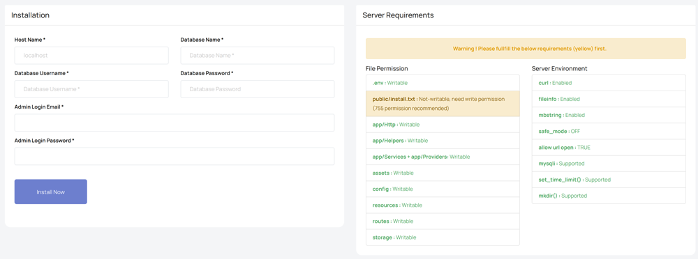 - 如果您點擊提交且處理完成後再次出現安裝頁面,表示系統無法刪除 public/install.txt,您必須手動刪除該檔案。