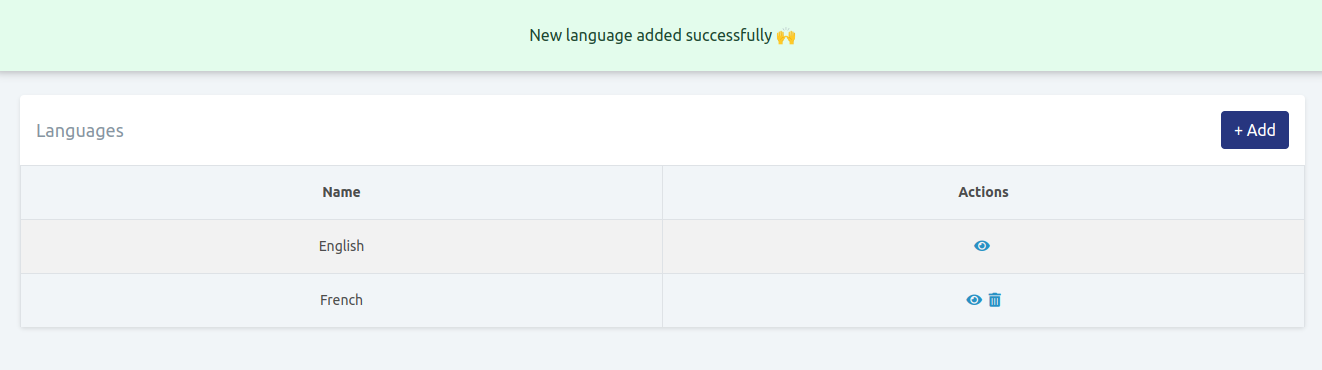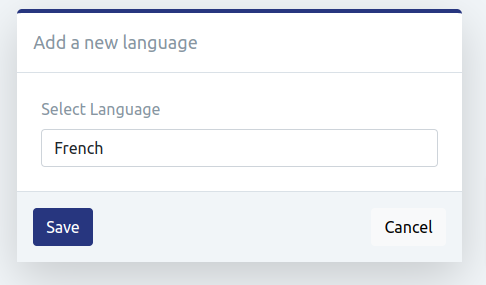 - 點擊「新增」按鈕以新增語言。選擇要新增的語言,然後點擊「儲存」按鈕。
