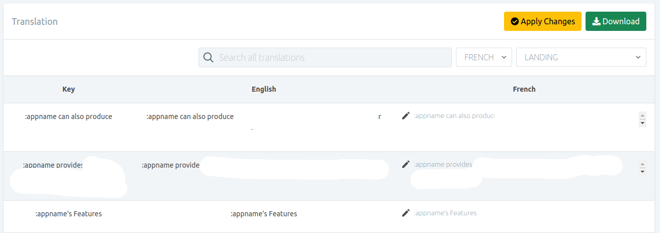 - 提供翻譯文字後,您必須點擊「套用變更」按鈕。