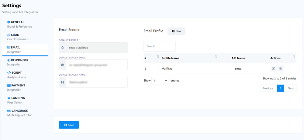 我們支援各種電子郵件供應商,包括 SMTP、Mailgun、Postmark、SES 和 Mandril。要將電子郵件設定檔新增到應用程式,請點擊「新增」按鈕。不要忘記「儲存變更」。