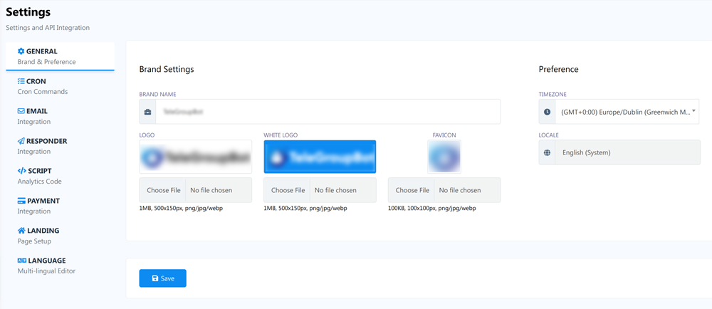 設定您的品牌名稱、標誌、網站圖示和偏好設定(語言環境、時區)